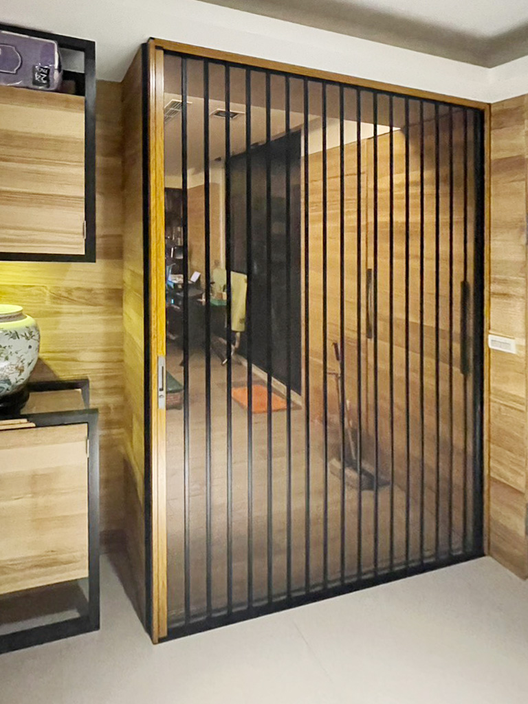金剛紗門是由高強度金屬網格材料製成,具有強度高、簡約有力、抗剪、搞撞擊等優質性能。傳統紗門易因抓咬或撞擊損壞,金剛紗門不僅為您免除這些困擾,並配有安全鎖更具安全性,低軌道設計方便輪椅與推車通行,讓居家防護全面升級!。